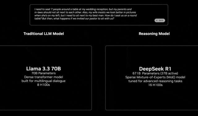 At Nvidia’s GTC conference earlier this week, Jensen Huang showed a comparison of exactly this dynamic on the keynote stage, between Llama (non-reasoning) and R1 (reasoning) when answering the same question.
