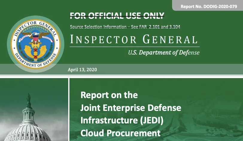 - Two main takeaways from the report: 1. DoD officials accidentally shared some Azure confidential information with the AWS team; 2. The question regarding possible political interference from the Trump White House is inconclusive (read: we don’t know enough to know)