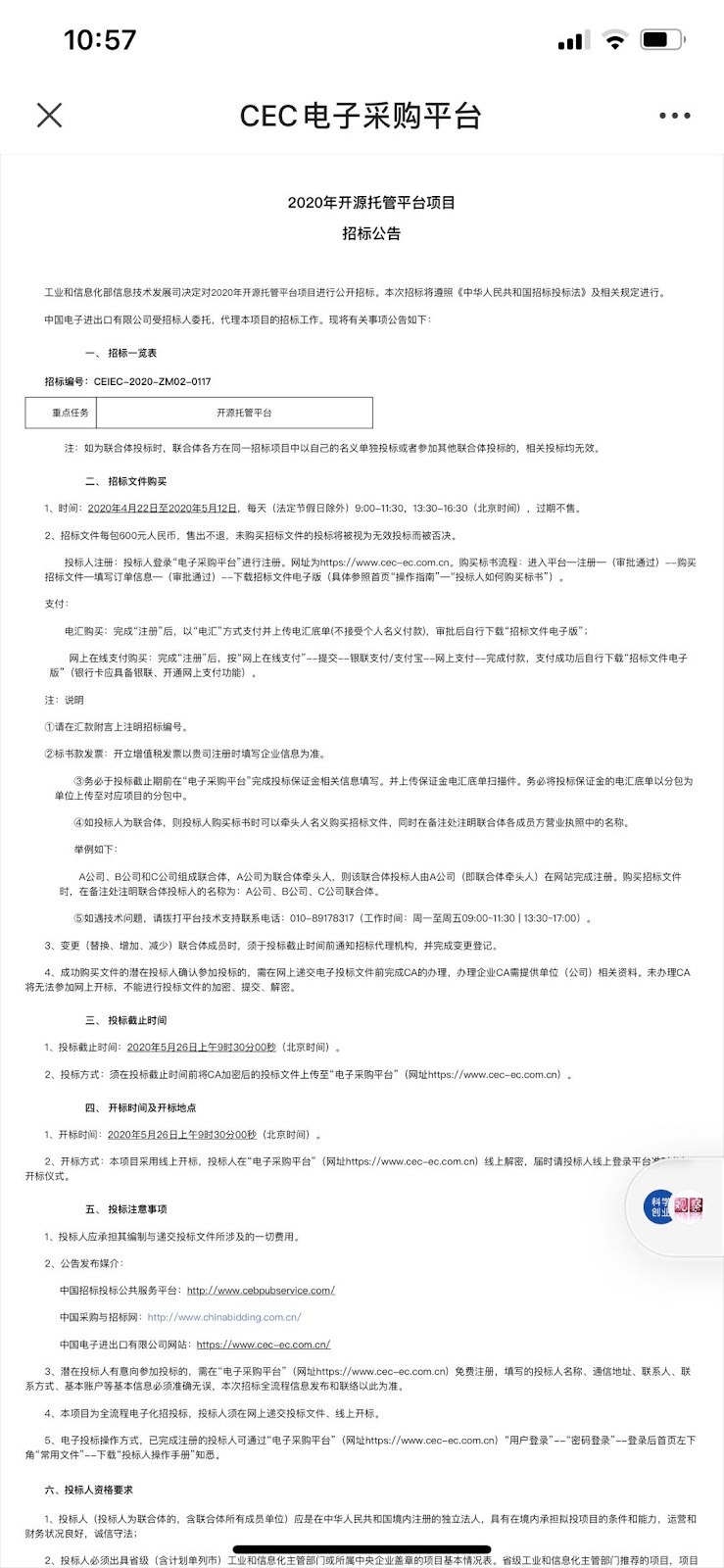 支持Gitee的决定是5月份一个官方项目采购的结果,该项目采购从业界寻求“开源托管平台”的解决方案。这应该是工信部具体参与开源的第一步。